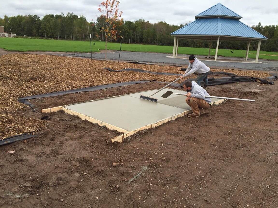 The GNDDA has completed some additional concrete work at The GND Rec site to address ADA (Americans with Disabilities Act) requirements. In addition, a couple of concrete pads for porta potties and a future bicycle rack were also completed. Boldt Construction coordinated the work (personnel on site included Mark Langenbrunner and Matt Haskins). The Carpenters Local 361 again provided one of its apprentices, Bhar Tribby, to assist with the work helping us and the project reduce our costs! Thank you!